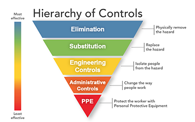 - Reduce Risks: We Use the Hierarchy of Safety Controls to answer the question, what can we do to make the work safer?